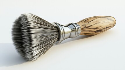 Black and white illustration of a paintbrush with detailed bristles and handle. Vector illustration