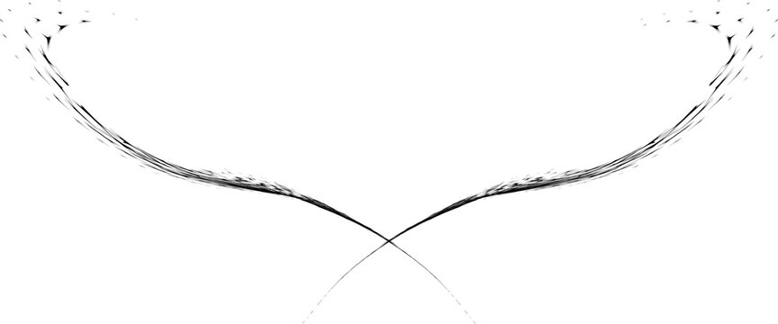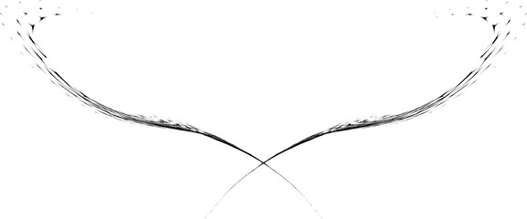 Needleshaped halftone cupshaped frame with curved top and crossed bottom ends. Rounded distortion of radiate, stellar elements. The finest contours of strokes and lines. Vector.