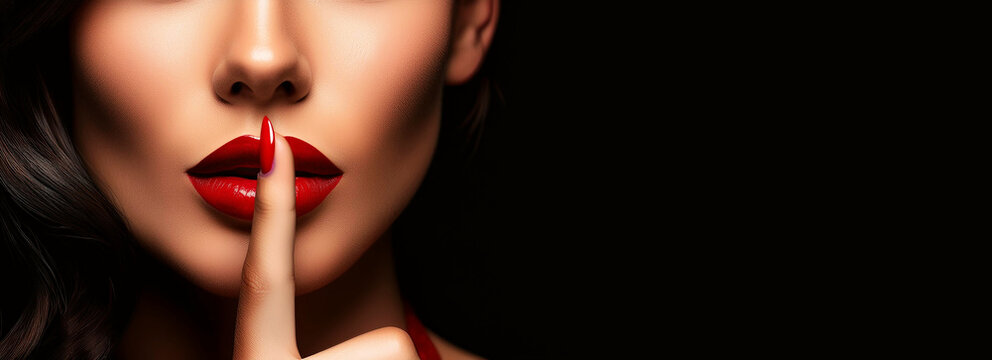Women's secret. Woman holding finger on lips