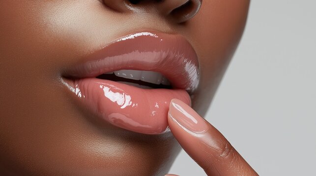 Extreme close-up and front view of a beautiful woman, doing expression with finger on lips silent shh gesture. Secret, silence, taboo and censorship and freedom of speech, concept. Generative Ai.