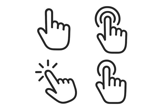 Hand pointer clicking finger vector icon set. Touch screen gesture symbol collection. Click, tap, and press button for website or mobile app UI UX interface design.