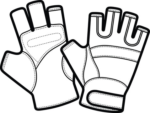 Black and white line drawing of fingerless weightlifting gloves on a white background fitness