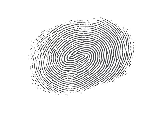 Fingerprint is shown in a circle. The fingerprint is very blurry. The circle is white. Flat vector illustration isolated.