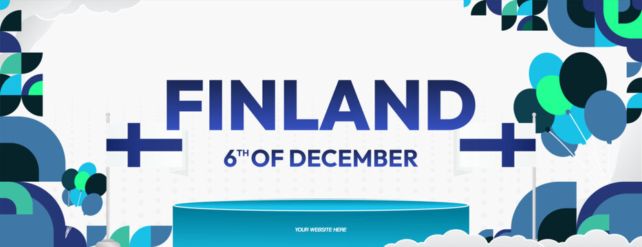 Finland Independence Day banner in geometric style. Colorful modern greeting card for National day of Finland in December. Design background for celebrating National holiday