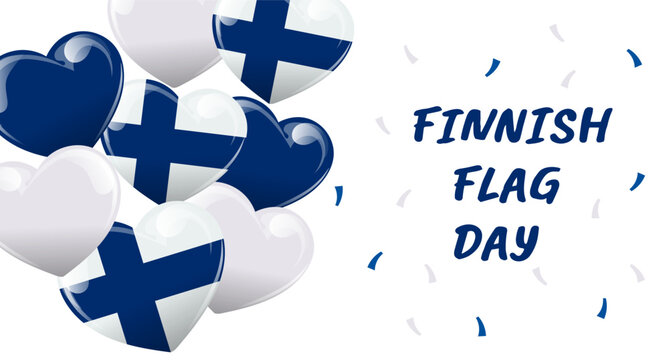 Finnish Flag Day. Banner with flags of Finland in the shape of a heart. Holiday illustration. Vector
