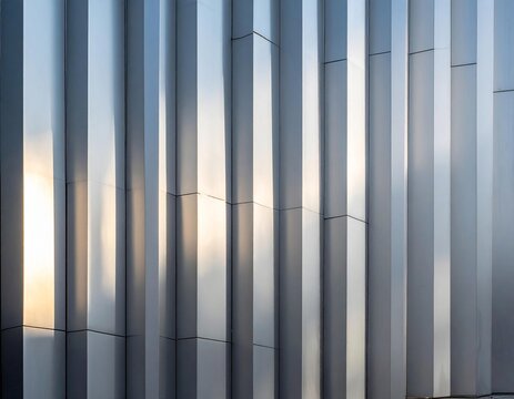 Modern architectural facade showcasing dynamic vertical metallic fins and captivating reflections