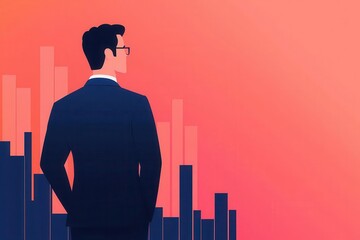 Artistic representation of a trader confidently making financial decisions without sufficient research surrounded by warning signs of potential market risks symbolizing overconfidence bias