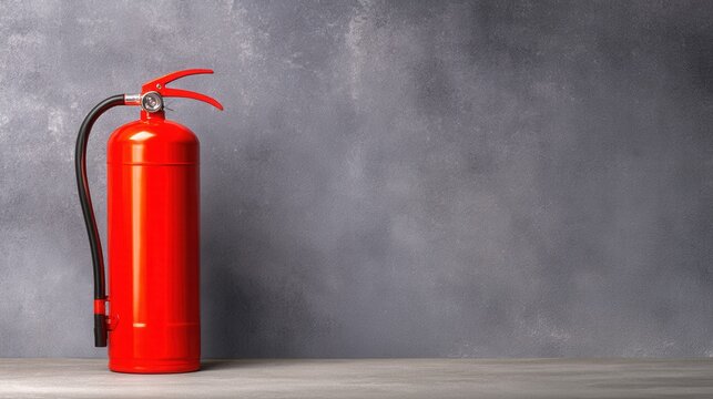 Bright red fire extinguisher placed against a textured gray wall, emphasizing safety equipment