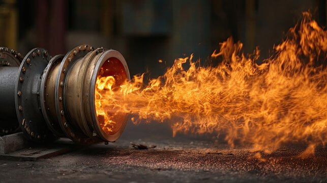 Intense flame emerging from industrial jet engine
