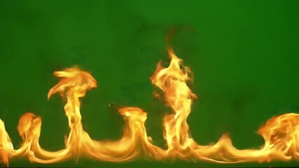 Dramatic flames rising with dynamic motion on vibrant green background