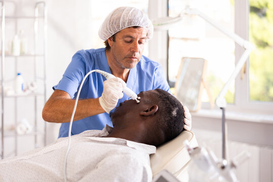 Applying Radiofrequency Skin Tightening on chin to enhance facial contours. Providing RF Therapy for smoother and firmer facial skin. Executing RF Skin Rejuvenation to improve skin texture and