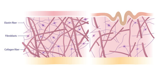 Pink serum or collagen drop and absorb to skin cell. reduce wrinkle and revitalize skin's elasticity concept. 3D rendering.
