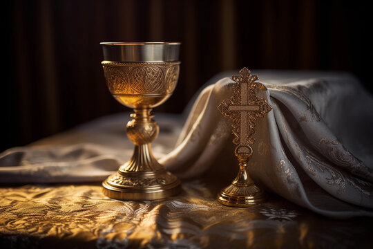 Eucalyptus botanical greenery and cross. Christening. Holy Spirit. Christian cross and green leaves for church, calendars, holiday cards, invitations, baptism. Easter catholic religious symbol
