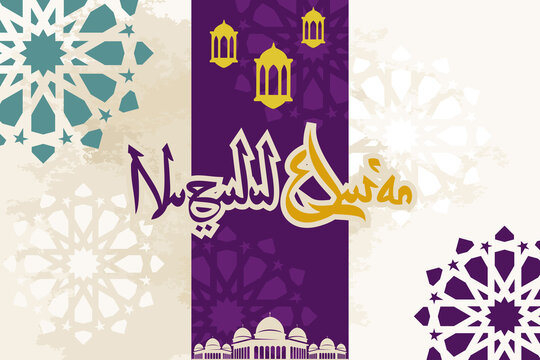 Translation: The night when the Al-Qur'an's first revelations were sent to the Prophet Muhammad SAW. Nuzulul Qur'an. vector illustration.