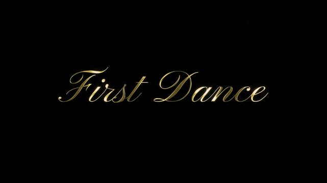 First Dance title animation. First Dance intro. First Dance of text reveal. Golden particle effect. Elegant romantic intro for wedding video. Transparent background. Overlay use.