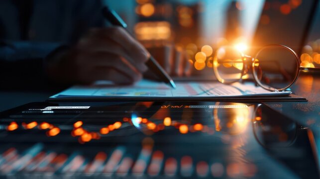 Businessman using tablet analyzing sales data and economic growth graph chart.  Business strategy. Abstract icon. Digital marketing