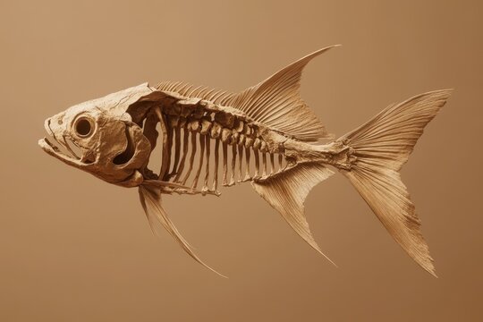 Detailed fish skeleton isolated on neutral background shows intricate details