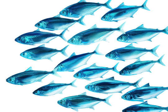 Silvery Fish Swimming School Isolated on Transparent or White Background, PNG