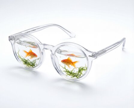 Conceptual Eyeglasses with Goldfish in Miniature Aquariums as Lenses