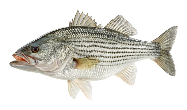 Fishing action striped bass catch in freshwater lake wildlife nature isolated on transparent background, png