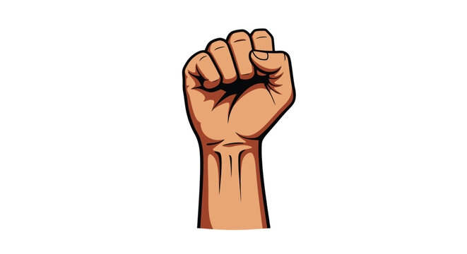 Black-and-white illustration of a raised fist symbolizing strength, unity, determination, and solidarity. Representing concepts such as empowerment, resistance, and collective action.