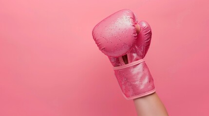 pink glitter boxer glowe, hand raised up, breast cancer awareness month