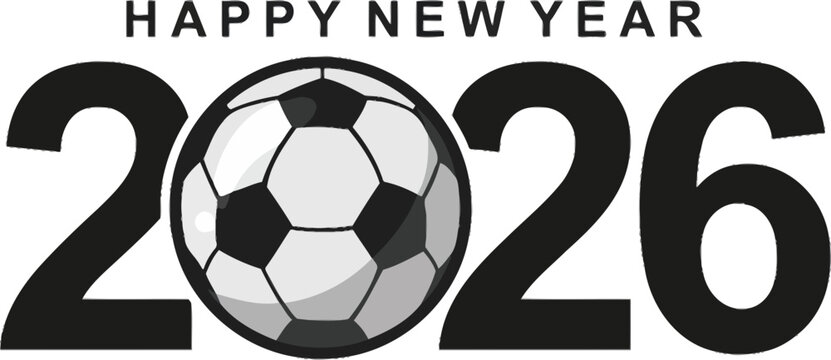 Exciting 2026 Happy New Year celebration with a soccer ball, perfect for sports enthusiasts and festive promotions ready for the year ahead