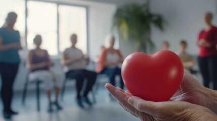 Hypertension patient attending a fitness class for seniors. Featuring exercise and community