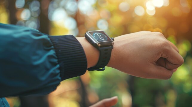 Sport science fitness technology concept. Healthy people on treadmill overlay digital tech health data insight graphics for advertising background.