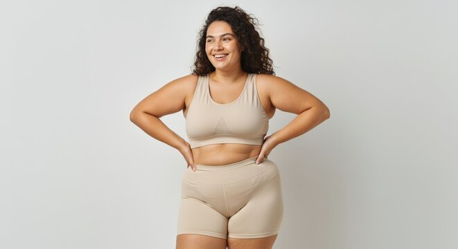Confident athletic young woman in activewear embracing body positivity and diversity