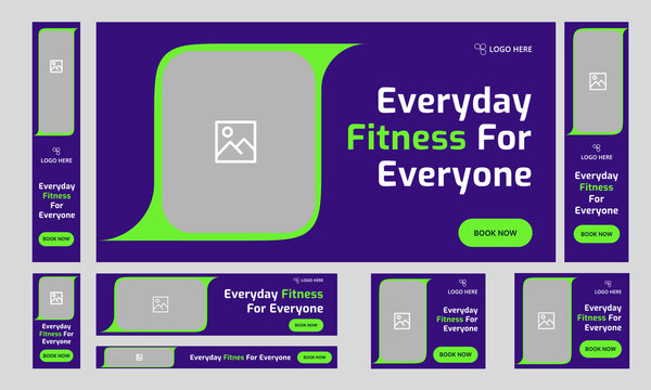 Trendy body fitness services web bundle banner design for social media post, daily exercise methods web set banner design, fully customizable vector eps 10 file format