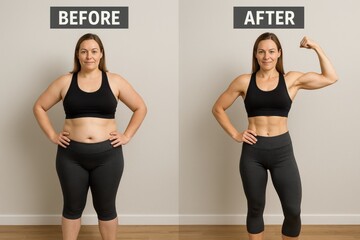 Weight loss transformation showcasing fitness journey and healthy lifestyle success
