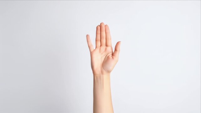 A fair-skinned hand with palm facing the viewer displays five fingers