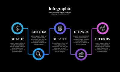 Modern Infographic Design for Five Steps Presentation with Customizable Text Sections and Icons Layout
