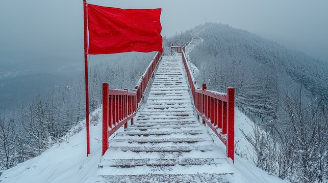 A flag draped over a railing, with the background fading into a soft, neutral color to empha