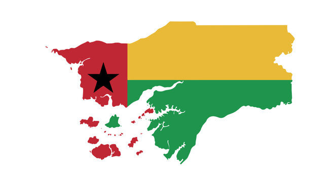 Guinea bissau map with flag colors: yellow, green, red, black star