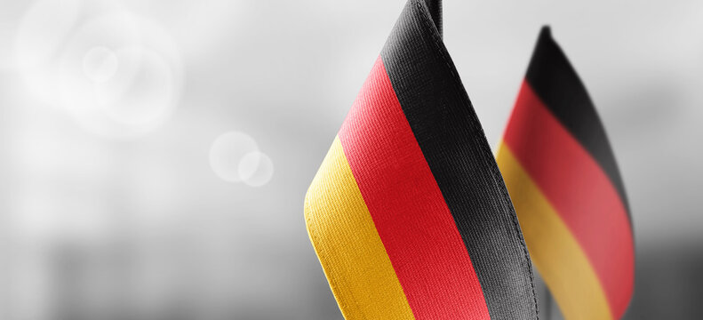 Flags of Germany and China. Linen flag close-up. Flag made of canvas. German, Berlin. Chinese, Asia. State national symbols. 3d illustration.