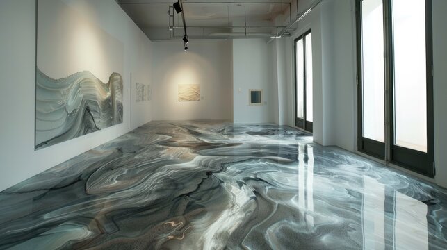 Modern room where both the flak and the floor are made of epoxy resin Generative AI