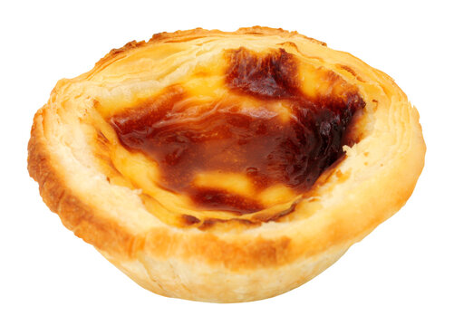 Pastel de nata pastries light flaky pastry filled with egg custard filling isolated on a white background