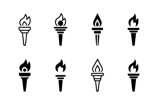 Collection of eight different torch icon variations