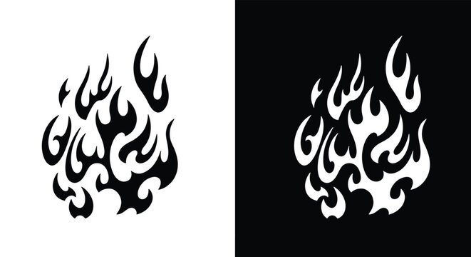 Thai Kanok Flame Motif Set Solid, Outline, and Inverse Styles