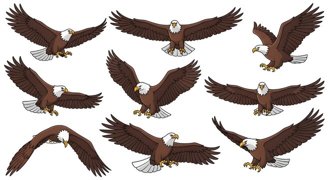 A Vector Set of Bald Eagle Animations, Depicting Various Flying Poses for Digital Media, Games, and Motion Graphics