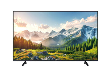 TV 4K flat screen lcd or oled, plasma realistic, White blank HD monitor mockup, Modern video panel white flatscreen on isolated white background