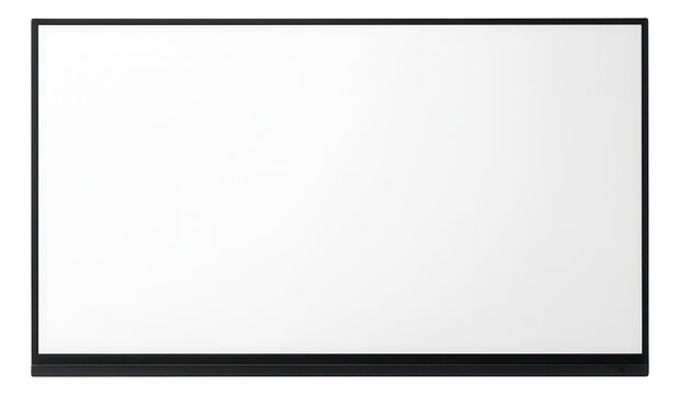 Modern flatscreen television with a blank white screen and black frame.