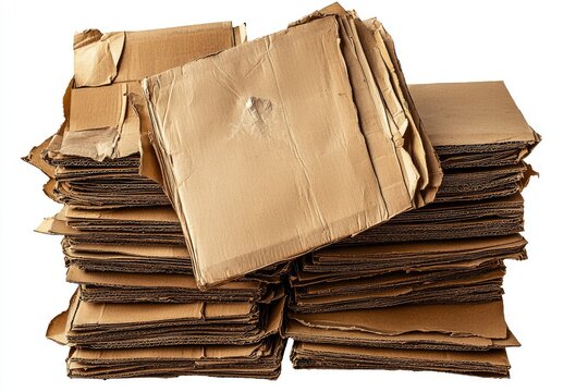 A pile of torn and flattened cardboard boxes awaits recycling, promoting sustainability and eco-friendly packaging solutions.