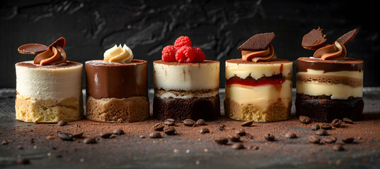 Multiple cups of coffee with variety of coffee drinks overhead view, generative AI