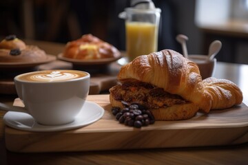 coffee break at bakery, with decadent pastries and flavorful coffee to fuel the afternoon, created with generative ai