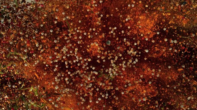 Super Slow Motion Shot Various Spices Mixture Exploding Towards Camera at 1000fps.