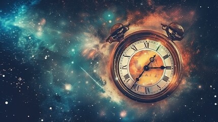 Concept of transience, the ephemeral nature of time, abstract illustration of clock floating in space. AI generated