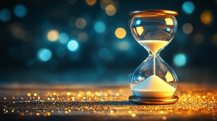 An hourglass rests on sand, symbolizing the passage of time and the fleeting nature of life.